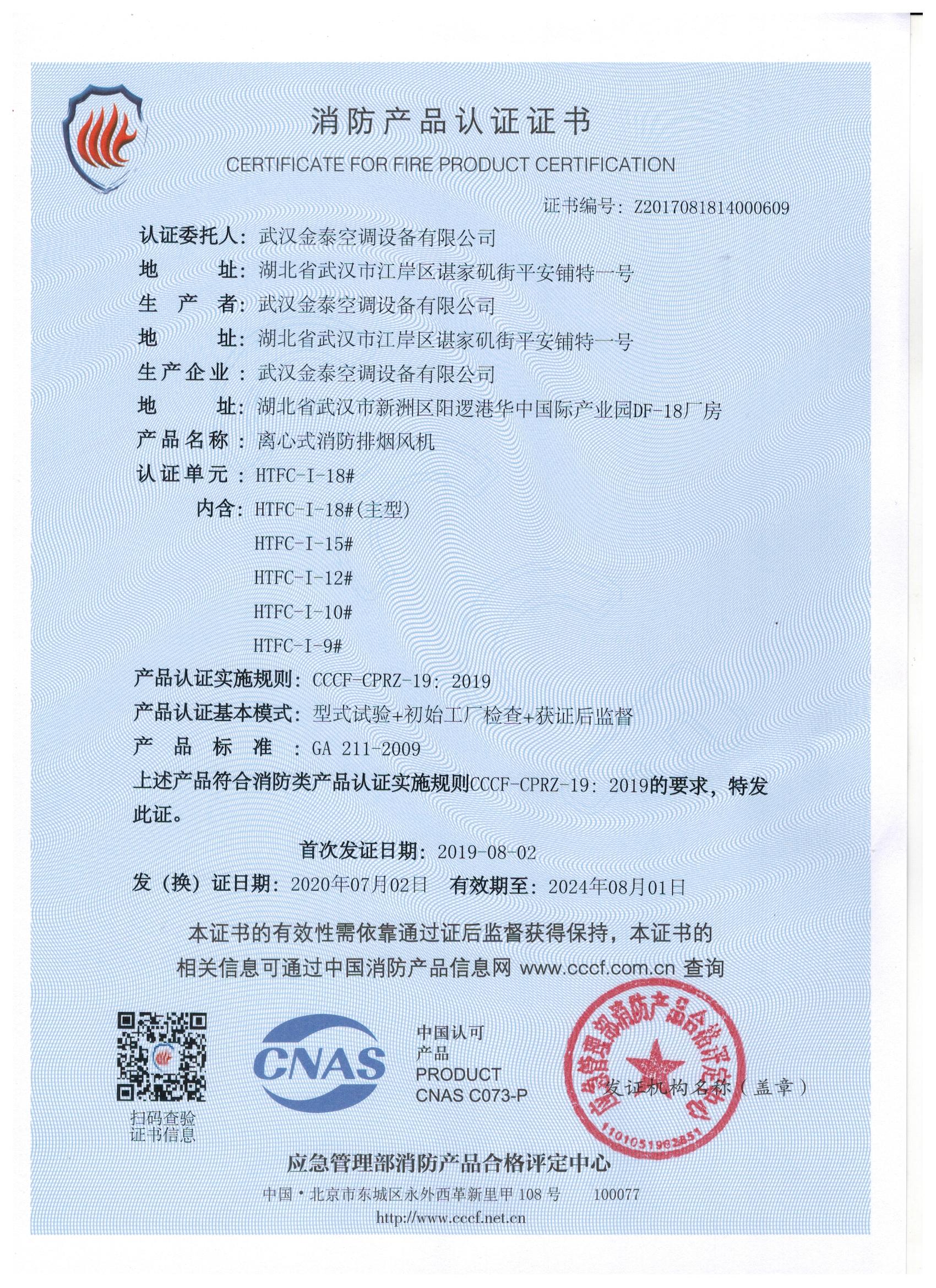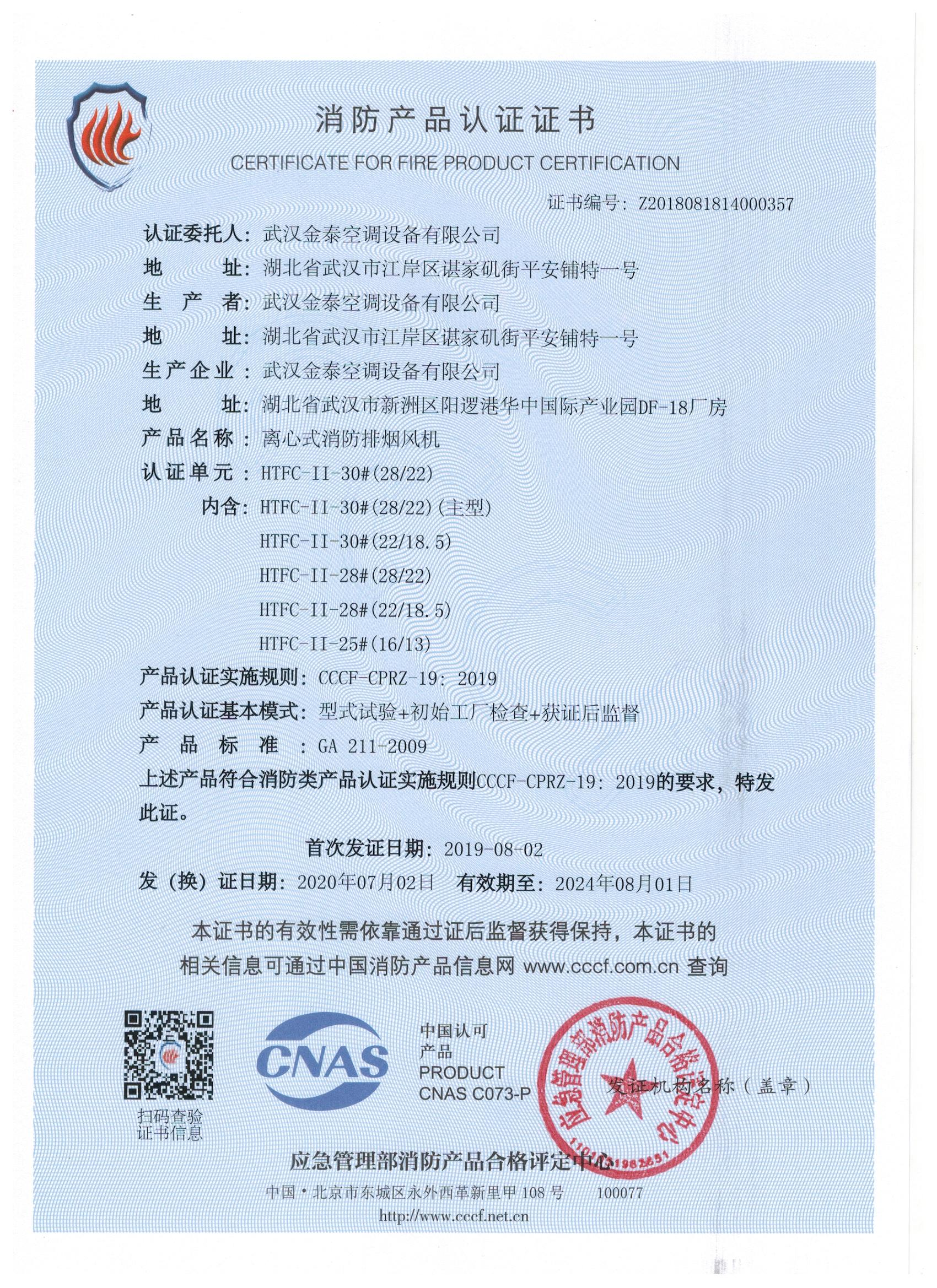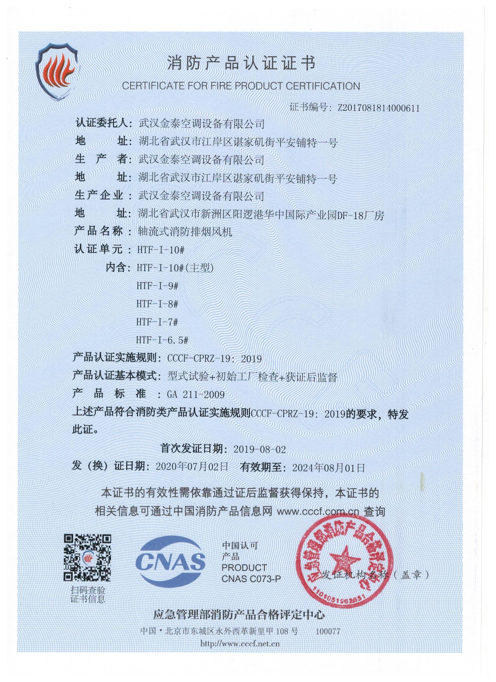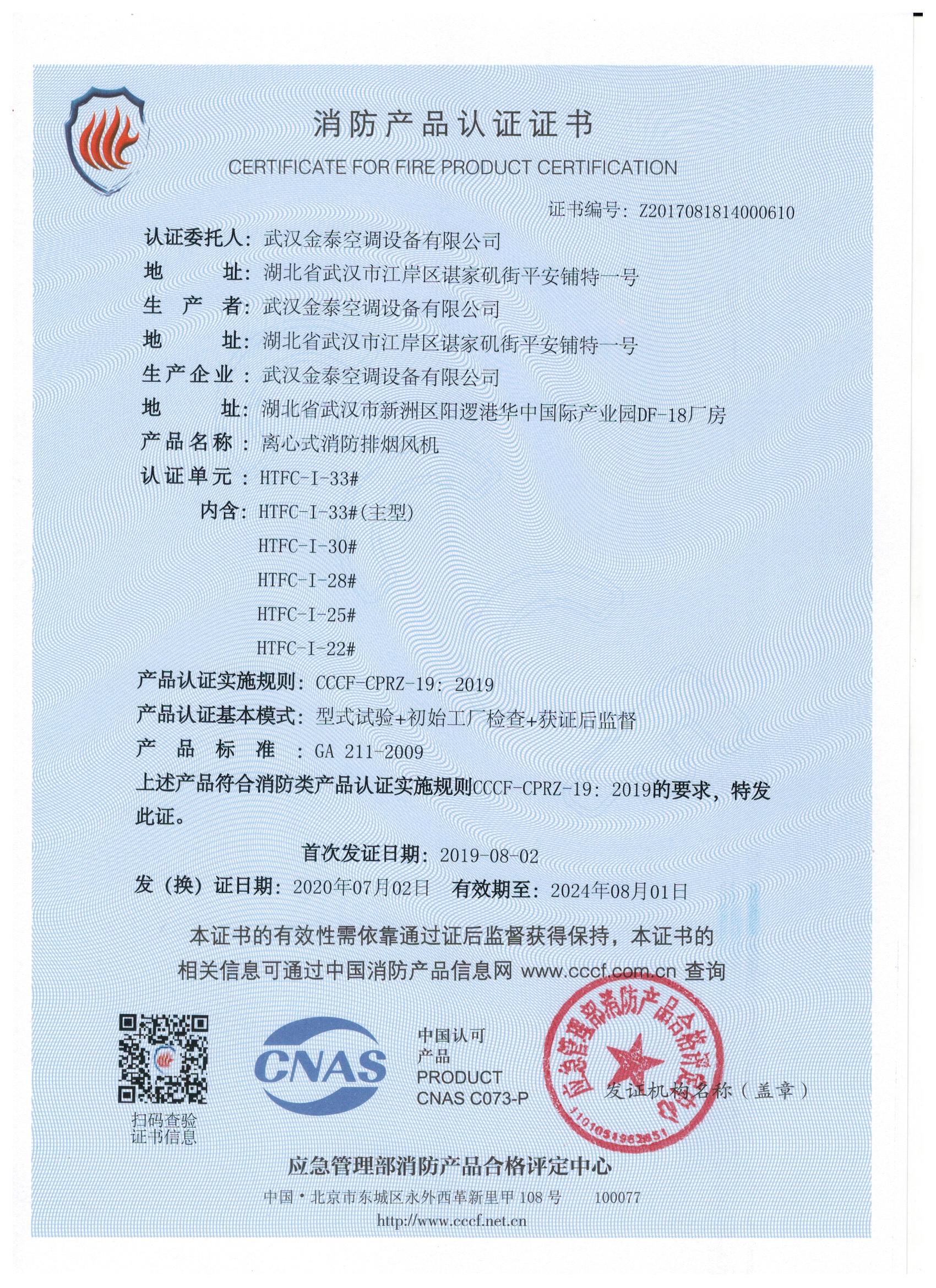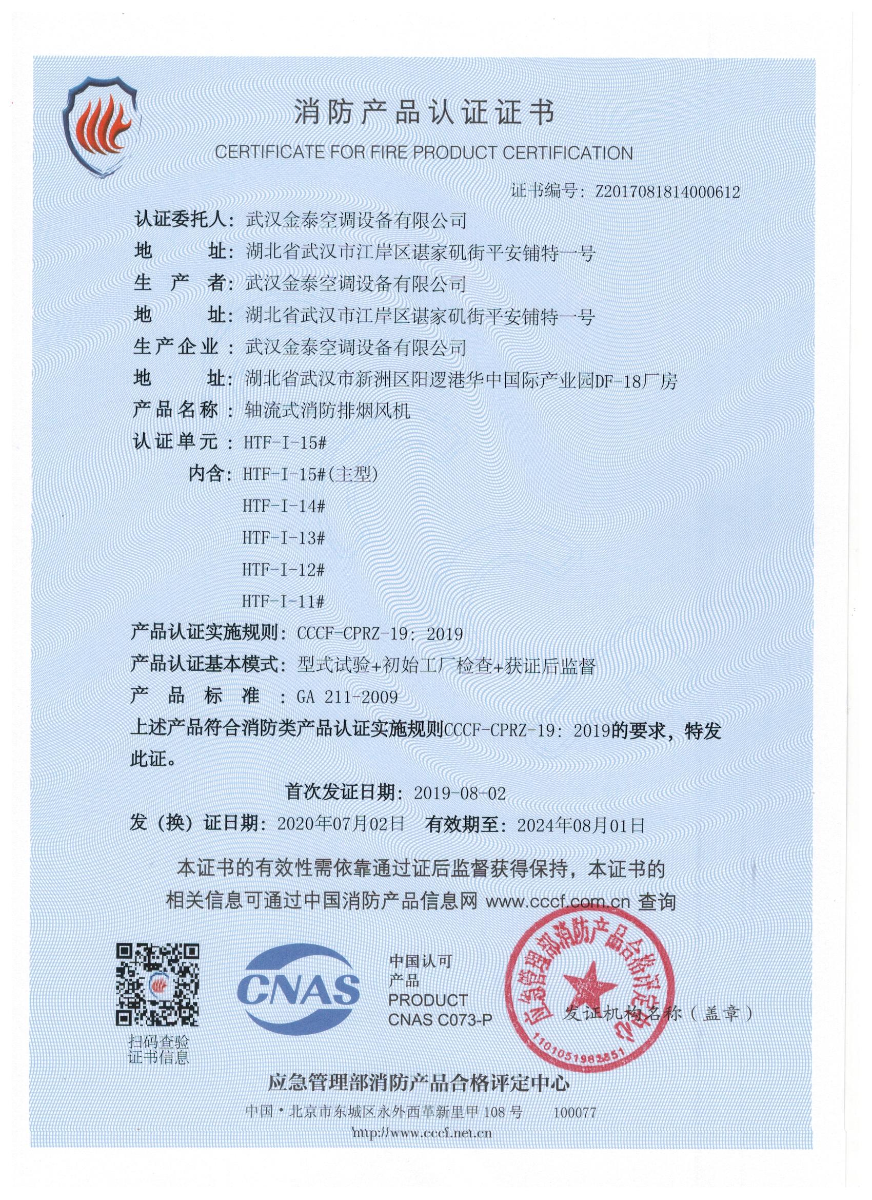 武漢金泰空調(diào)設(shè)備有限公司 是國內(nèi)長期專注于民用風(fēng)機、工業(yè)風(fēng)機領(lǐng)域的標(biāo)桿企業(yè):專業(yè)生產(chǎn)消防排煙風(fēng)機系列、排煙防火閥系列、一般通風(fēng)機系列(軸流式、離心式、屋頂式、壁式、隧道式、射流式)、風(fēng)口、風(fēng)管等消防及通風(fēng)設(shè)備。產(chǎn)品經(jīng)公安部消防產(chǎn)品合格評定中心評定符合消防產(chǎn)品CCC標(biāo)準(zhǔn);經(jīng)中國合格評定國家認(rèn)可委員會認(rèn)證的檢驗所檢驗合格;經(jīng)國家防火建材質(zhì)量監(jiān)督檢驗中心(四川中心)火燒實驗,耐火性能達(dá)標(biāo)。